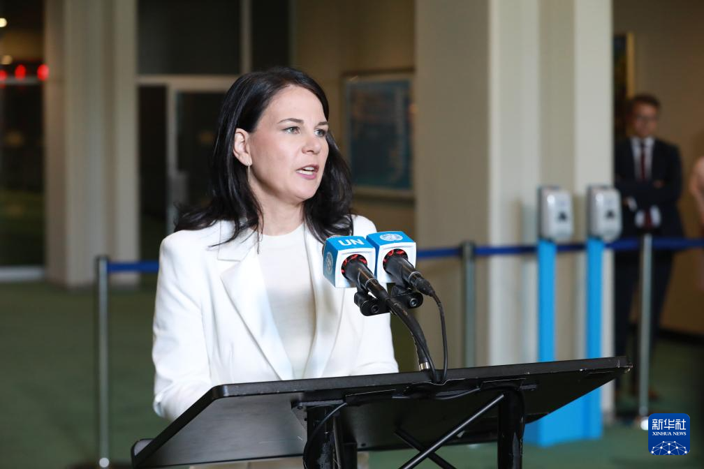 安娜萊娜·貝爾伯克當(dāng)選第80屆聯(lián)大主席后向媒體發(fā)表談話。